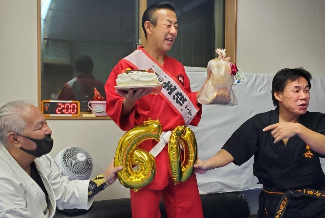 野間道場の師範が、2023/11/22に誕生日を迎え還暦祝をしました。