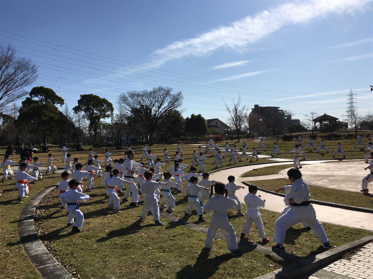 この日の予報は、寒波の影響で今年一番の寒さになる予報でしたが、子供たちの熱い気持ちで晴天に恵まれ気持ちよく寒稽古ができました。